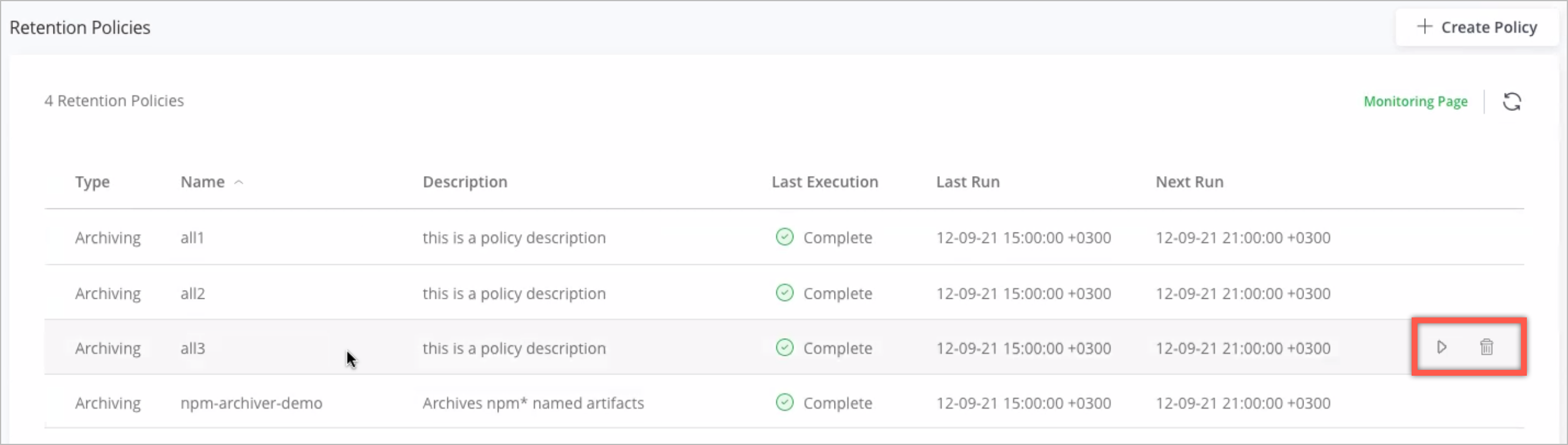 Admins can create, view, edit, and delete archiving policies as the need arises using the UI or APIs. For more information, see Working with Cold Storage.