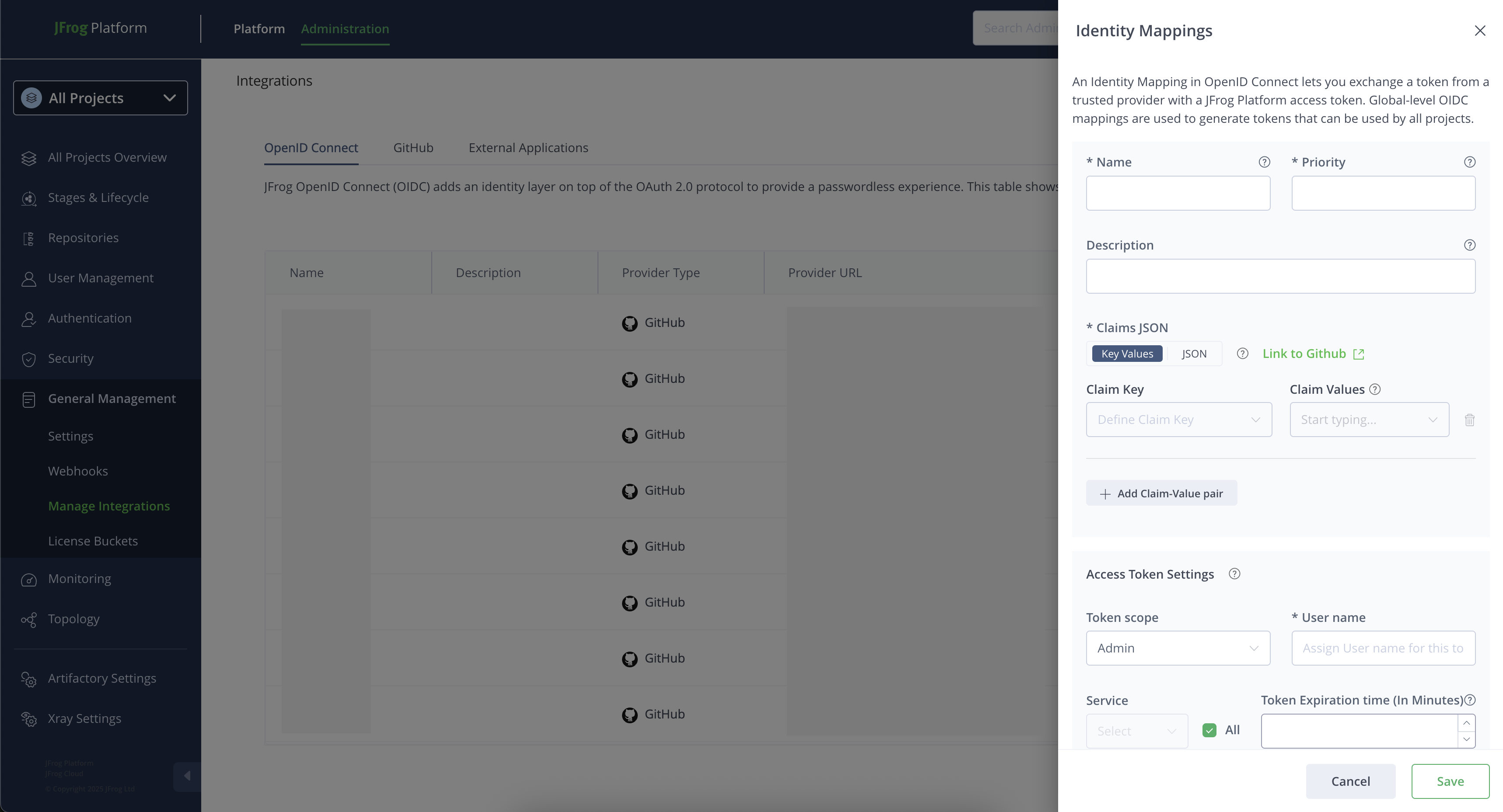 Step 2: Configure OpenID Connect Integration and Identity Mappings in the JFrog Platform