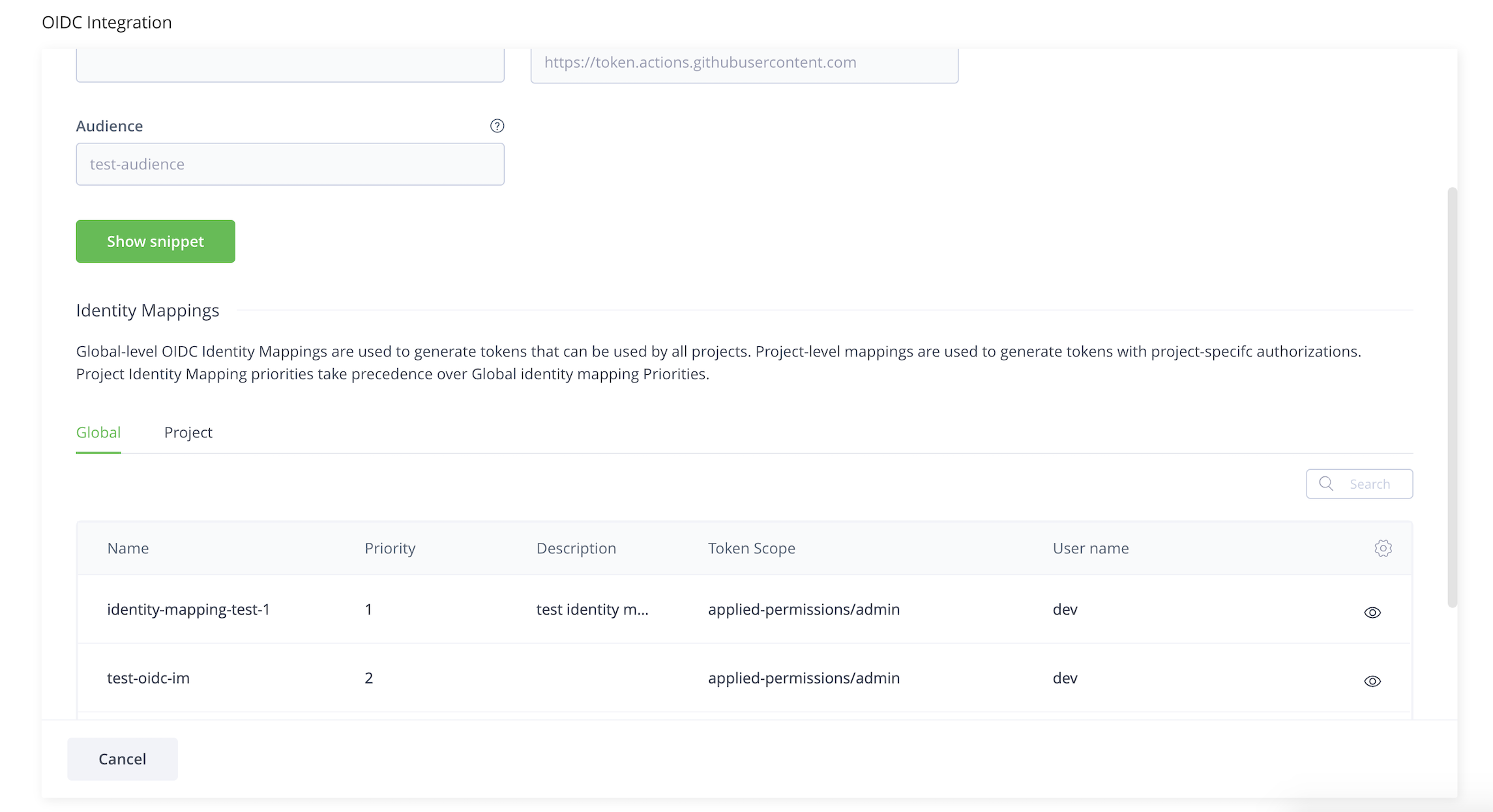 When you are working in the scope of All Projects, a Platform Admin can create identity mappings. If you are working in the scope of a specific project, a Project Admin can create identity mappings for that project. There are both global level identity mappings and project level identity mappings. Global identity mappings can apply to all projects. A Project identity mapping applies only to a selected project. Each identity mapping is assigned a priority rating. Project identity mappings take precedence in priority over global identity mappings.