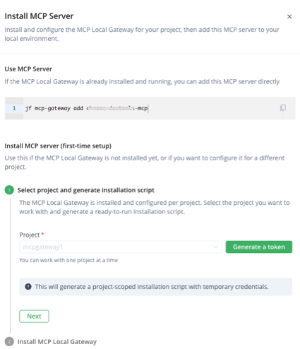 Follow the instructions below, according to whether this is the first time setup of an MCP server, or the MCP local Gateway is already installed and running:
