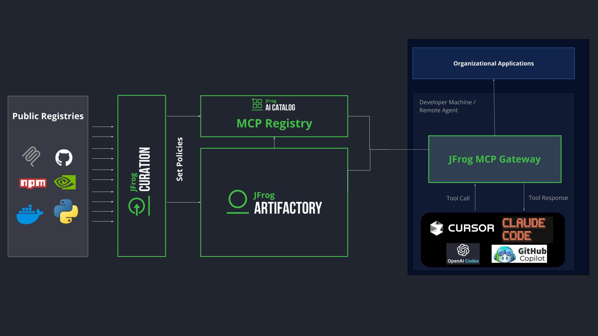| Shadow AI: Developers pull unverified MCPs from unknown public sources | A Trusted Supply Chain MCP servers are treated as artifacts in Artifactory, vetted and curated before they can be used |