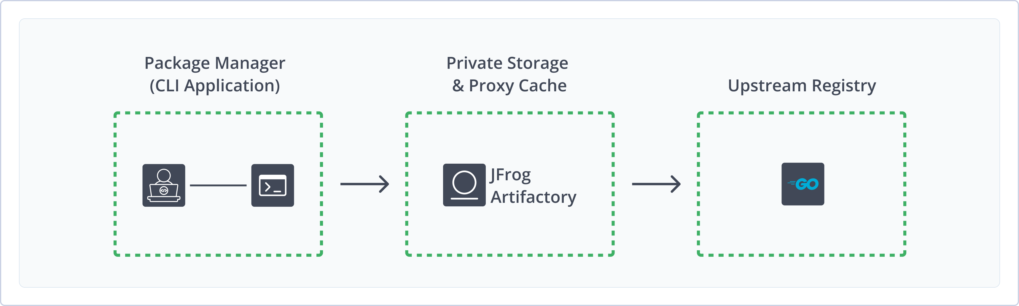 - Remote Go repositories, which provide proxy and caching functionality for remote Go resources.