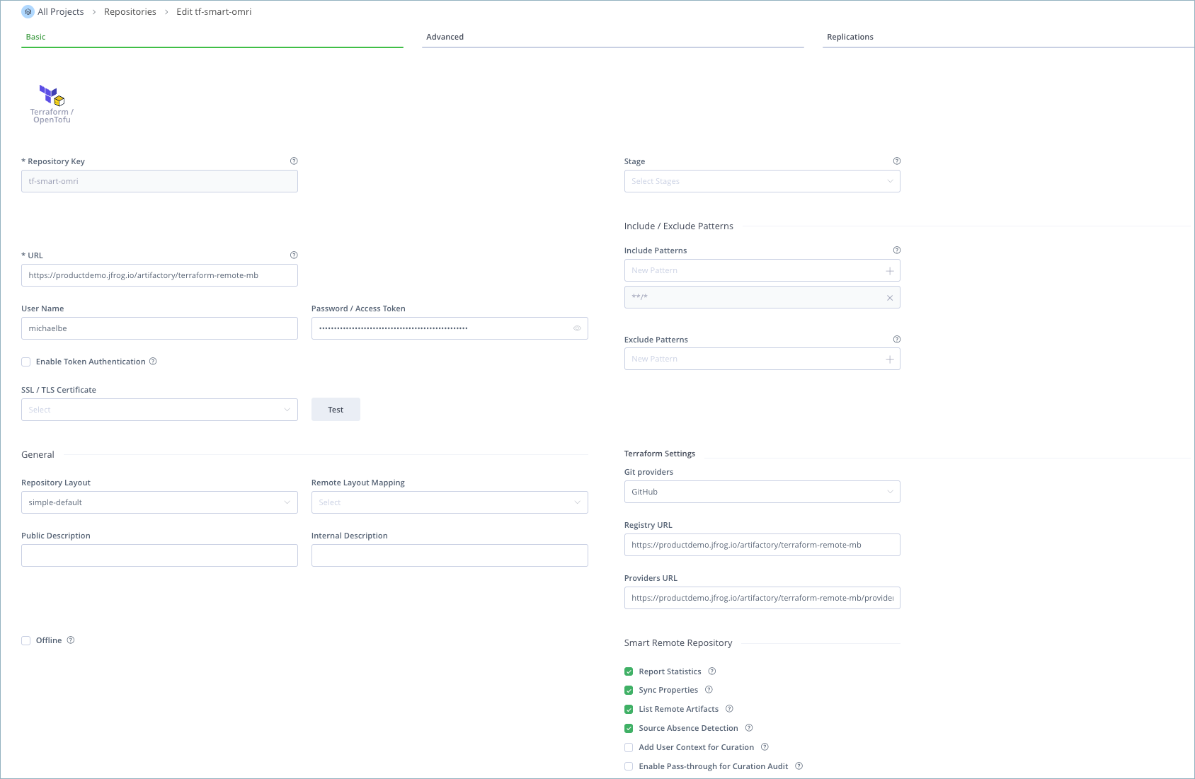 To configure your Terraform client with the newly created Smart Remote repository, see Connect Your Terraform/OpenTofu Client to Artifactory.