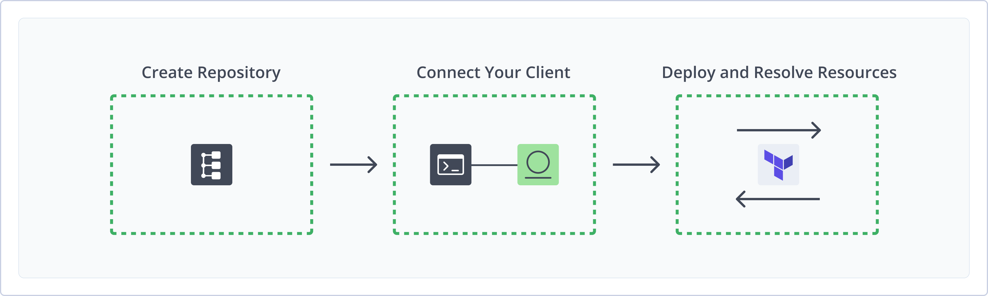 To get started working with Terraform Registry and Terraform Backend, complete the following main steps: