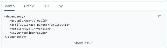 Repositories: Lists the Artifactory repositories where the package version exists. You can display the location of the package version in the Artifactory Tree view by clicking on the 3 dots at the end of the row and selecting Show In Tree.