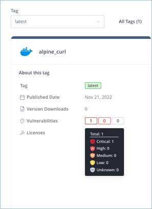 Use the quick package version selection to quickly find a package version and display its relevant details. Click the down arrow by the currently displayed version or enter search text in the text box. A dropdown list of all versions/tags appears, as shown below.