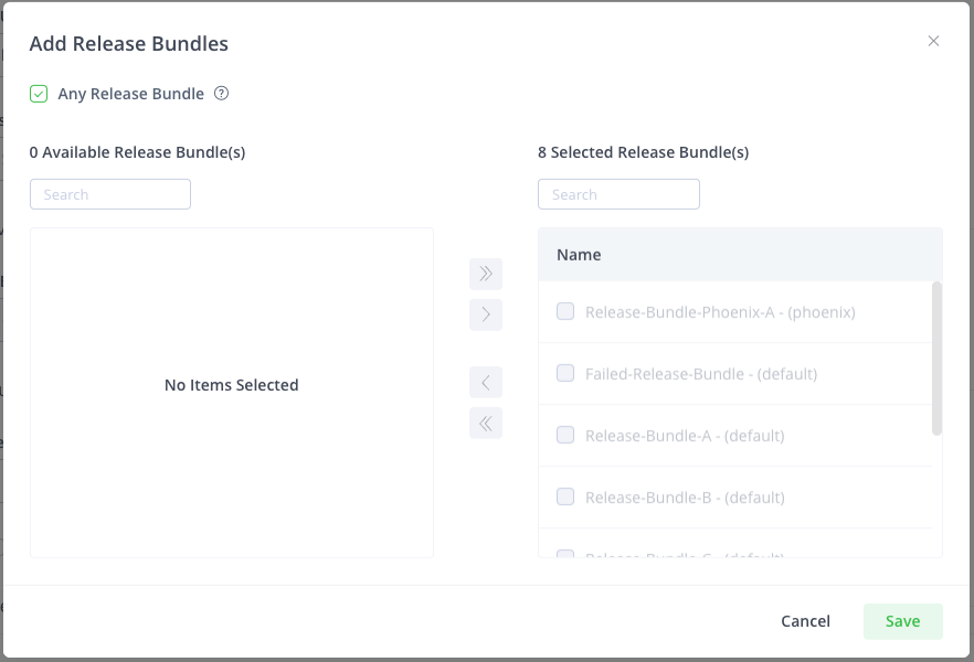 - Choose which Release Bundles to include. Click Save when finished.