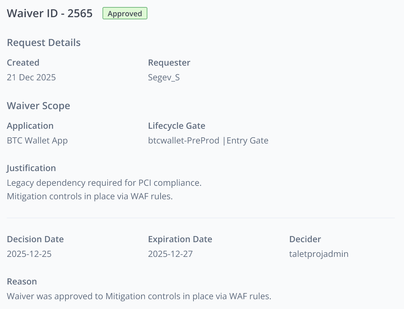 - Resource Scope: The scope to which the waiver applies, for example, the application.
