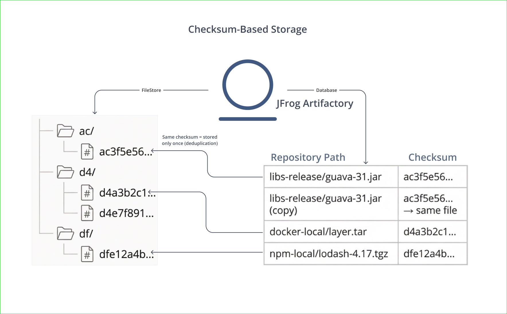 For more information about checksum-based storage implementation in Artifactory, see: