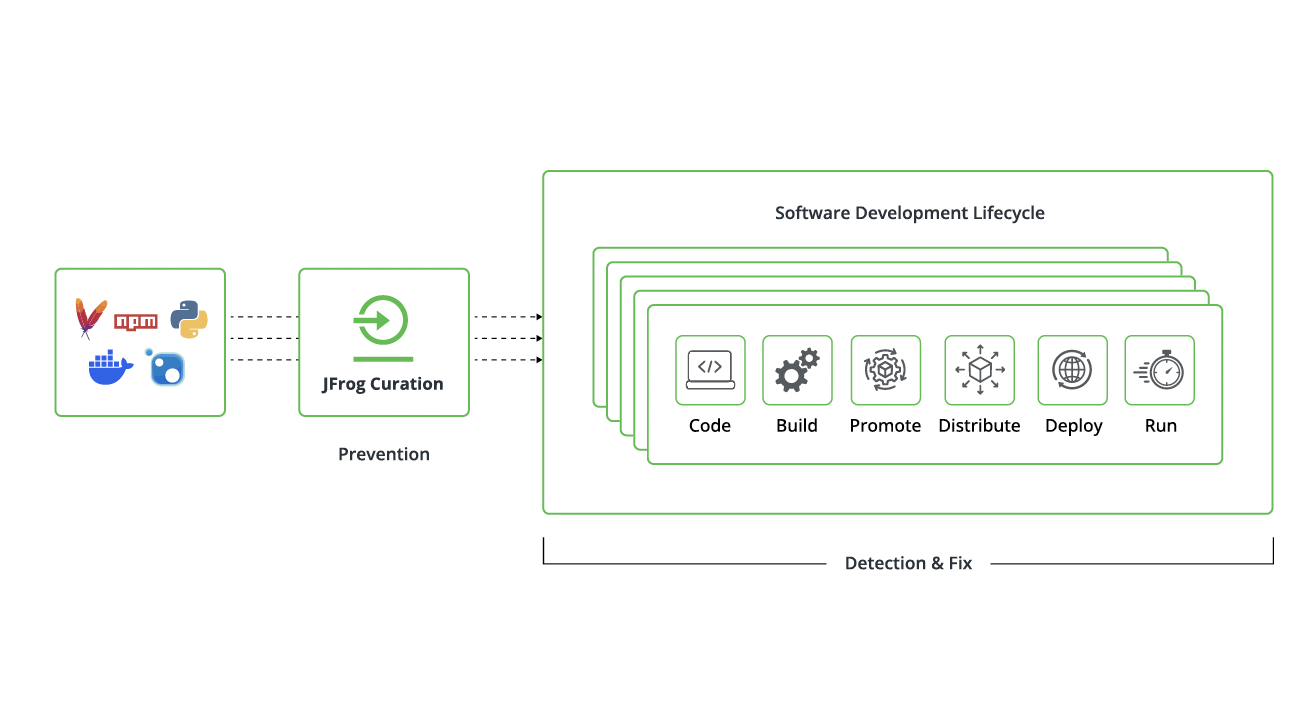 JFrog Curation is the first line of defense in securing an organization’s software supply chain. It operates at the package acquisition stage, preventing risky dependencies from entering repositories before they are even used in development, testing, or production.