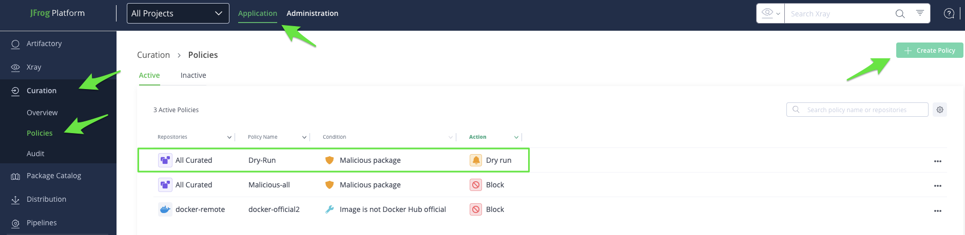 Policy Impact Assessment: Dry Run Curation offers a "dry-run" mode to facilitate this evaluation. Configuring policies with dry-run action allows you to identify violations without enforcing blockage on developers. Any violations will be recorded in the Dry-Run tab of the Audit Events window, which shows a comprehensive list of all packages that violate the active policies.