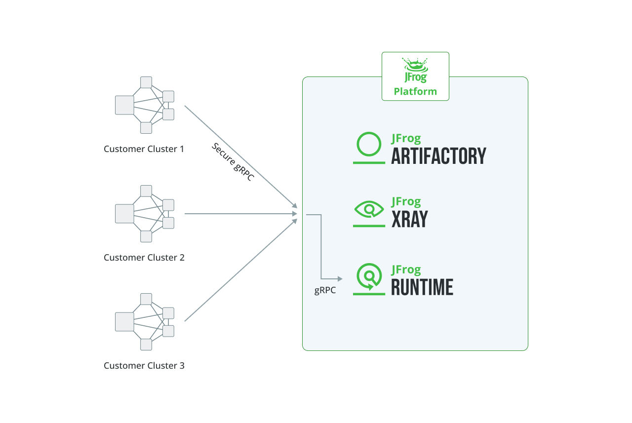 JFrog Runtime integrates with the broader JFrog Platform, which includes Artifactory, Xray, and Advanced Security. This integration allows it to: